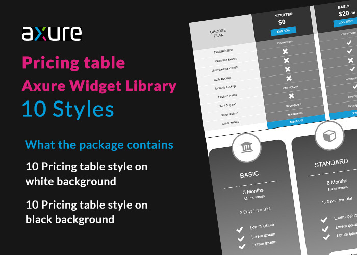 Pricing Table Axure Widget library file and Template - 10 Styles - Axure RP 9 Templates